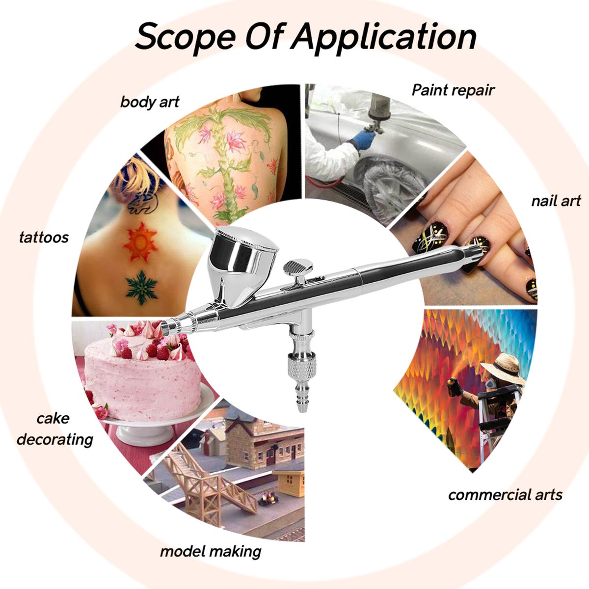 Airbrush for model making, wall decorations, draw the outline of model, car paint repairing, etc.