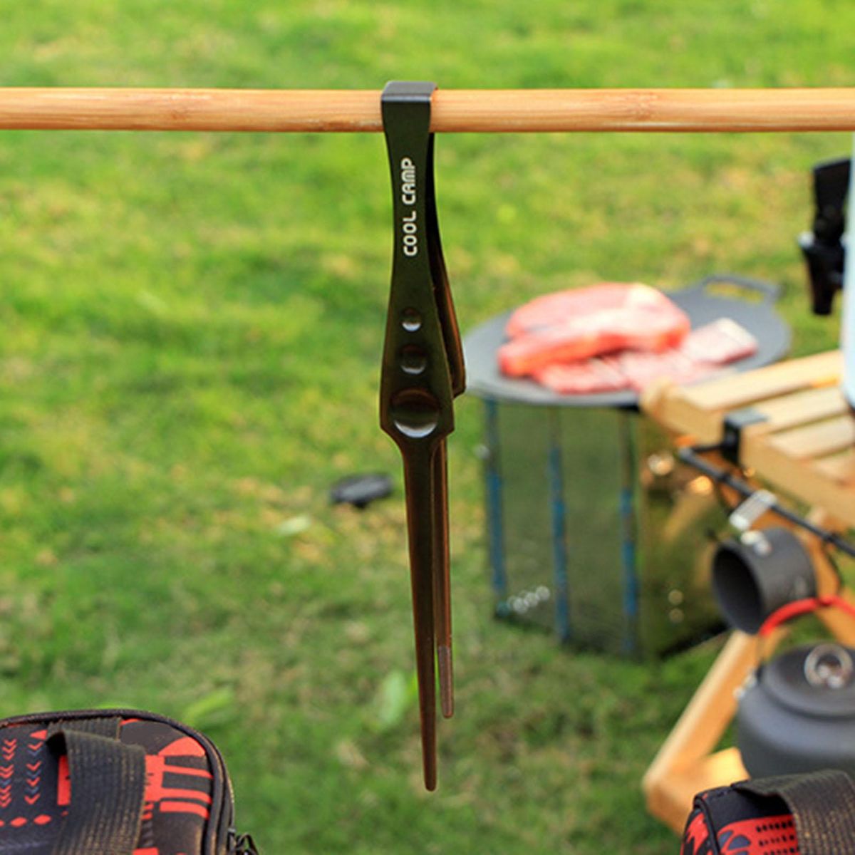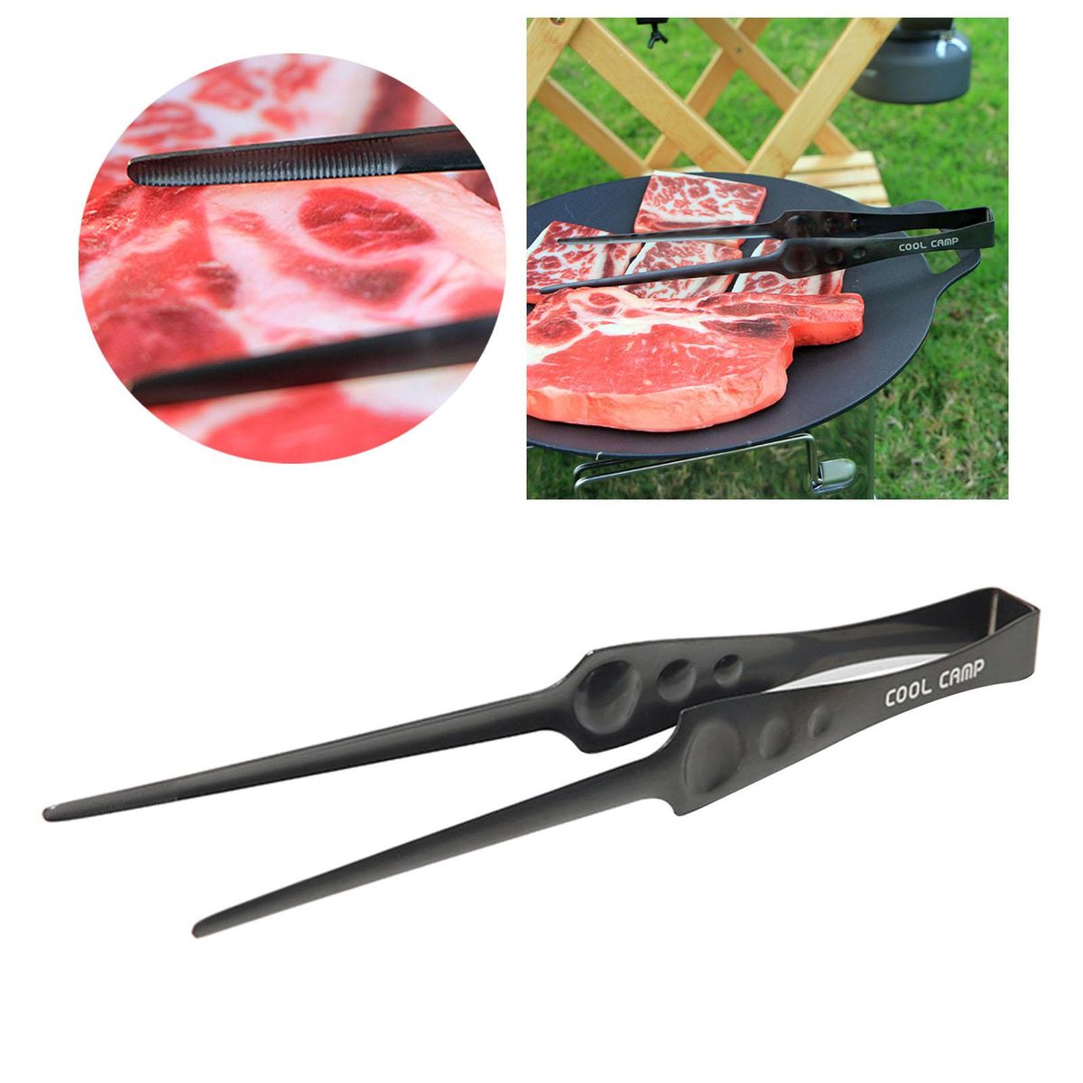 Grill ;utensil food clip cooking tongs kitchen grill;accessories clamp toast bbq cup steak buffet;black stainless steel camping camp lightweight;cookware campfire outdoor handy steak tool long;backpacking spatula tweezers picnic anti scalding