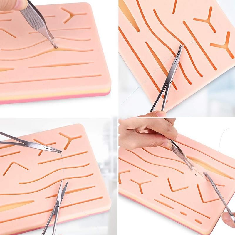 Durable High Quality Suture Pad:Our Suture pad is made out of silicone, feels very natural and doesn't rip easily. It provides three layers to provide the best human tissue simulation possible: skin, fat and muscle, to provide the best human tissue simulation possible. It comes with 14 wounds of 8 types and has sufficient space for additional cuts.