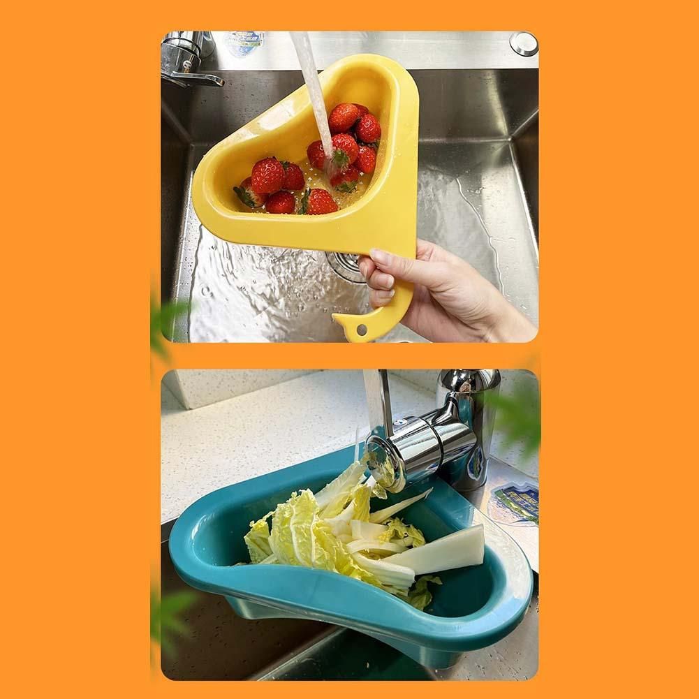 [Multifunctional Drain Basket]: The kitchen triangular sink filter rack easily hangs over the edge of the kitchen sink , washing fruits, strain tea leaves, store vegetablesetc. It can also be used as a sponge holder or storage shelf. The swan shape drain basket has a wide range of uses and is very convenient to keep the sink countertop clean and tidy!