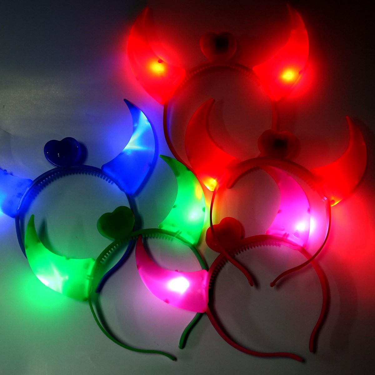 Red sharp corners, red flashing LED light color, plastic Halloween devil corner headband, one size fits more.