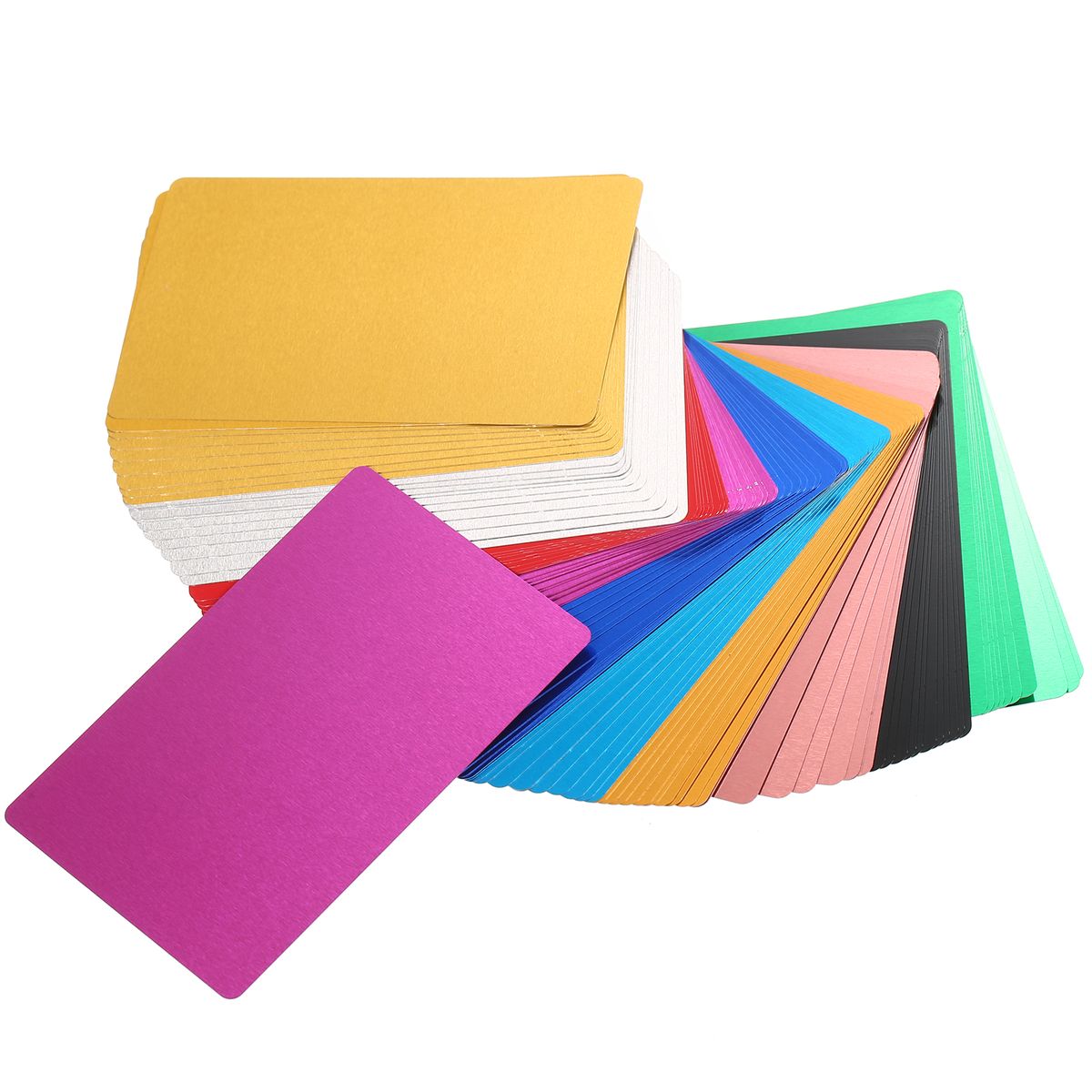 【Multi-color Use】There are 100 pieces blank aluminum business cards in one package, 10 different colors (contains green,yellow, silver, red,purple, dark blue, light blue,gold, rose gold, black ),10 pieces for each color; You can DIY your own cards for yourself or others.