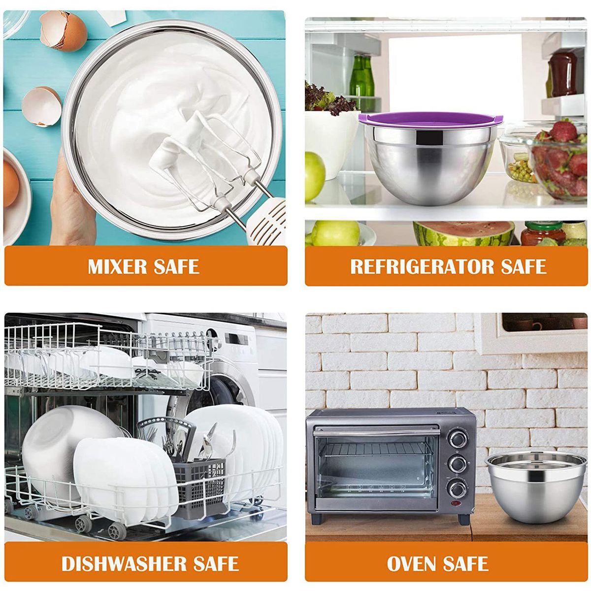 [MULTI USE]They would meet your different needs on your home kitchen, restaurant and canteen, like prepping food, storing leftover, or mixing salads, beating egg or serving soup, Bowls are Oven and Mixer Safe.