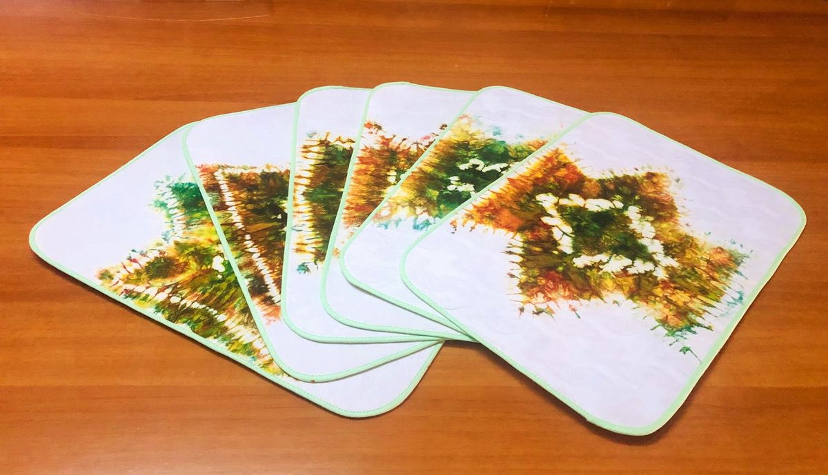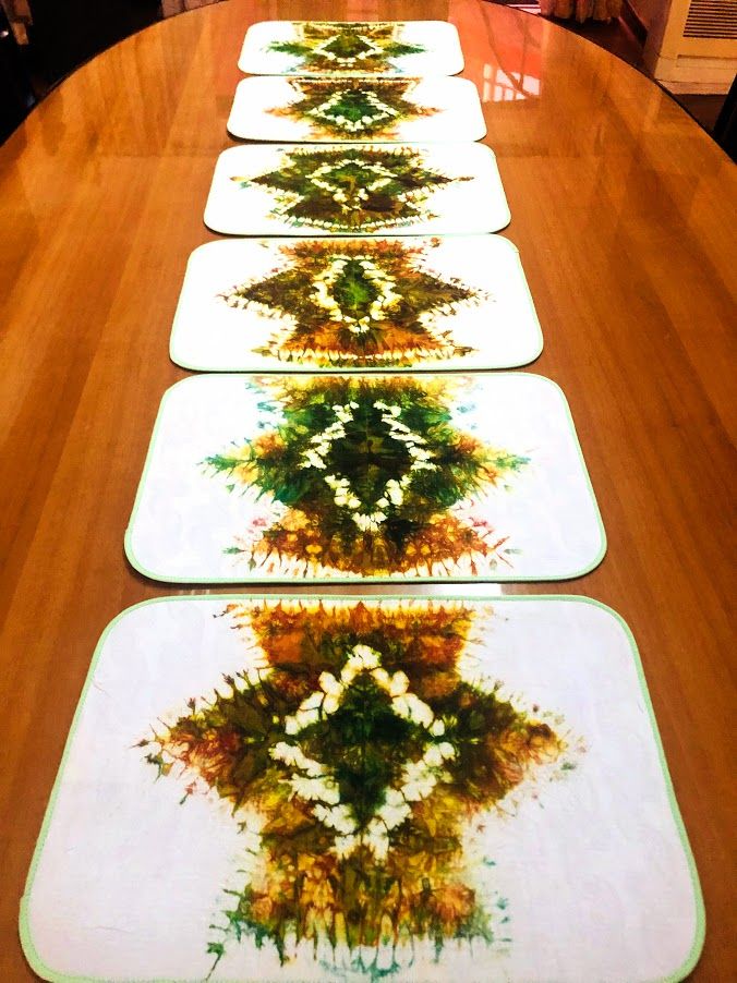 Bring some vintage style to your dinner table with this beautiful and unique set of 6 tie/dye table mats. Stylish and practical, this set of 6 tablemats is made from pure cotton and is ideal for setting the scene for any occasion, whether special or every day. Affordable price. Unique shape. Luxurious fabric. The perfect finishing touch to your table for all special occasions.