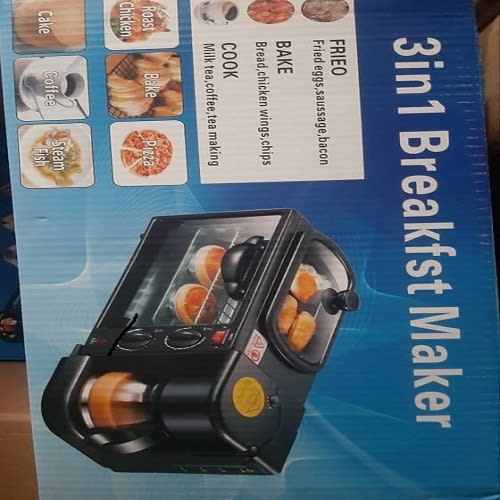 Save kitchen space with 3 in 1 Breakfast Maker that combines a Coffee Maker , Oven/Grill & Frying Pan.This appliance can bake, grill, brew coffee or tea, make pizza, cook and fry.