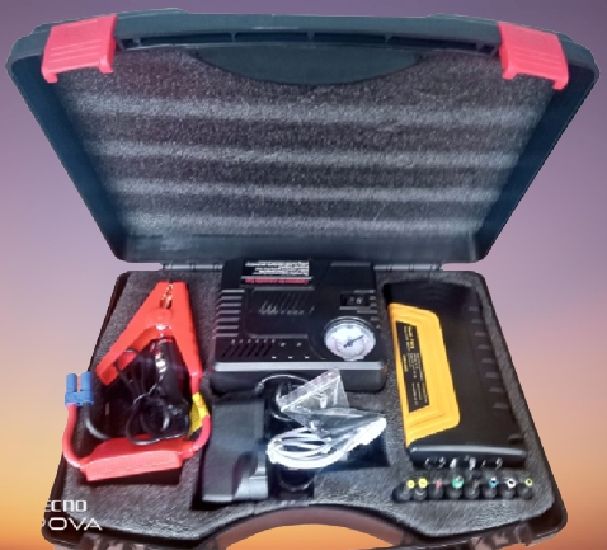 High Power Multifunction Jump Starter Power Kit With Tyre Inflator Air Pump Fills Tires.Capacity: 99800mAh{ Can Jump Start Any Cars ,truck , Pump Car & Truck Tyre & Charge Laptop And Electronics With 12V Like Led Fan, Led TV, Led Bulb, Led Portable Fridge}