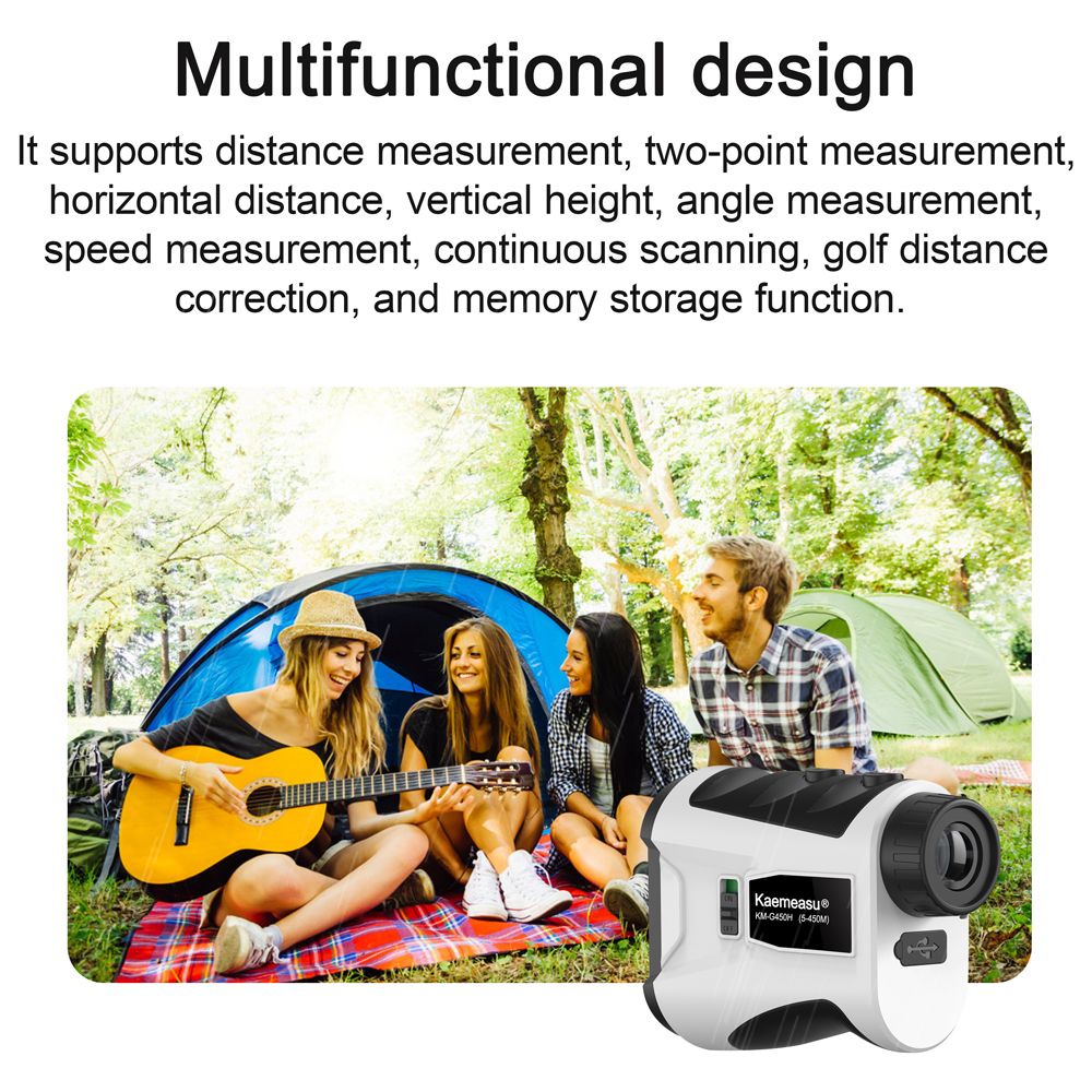 Multifunctional design: it supports distance measurement, two-point measurement, horizontal distance, vertical height, angle measurement, speed measurement, continuous scanning, golf distance correction, and memory storage function.