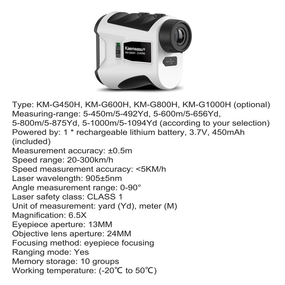 (optional)Measuring-range: 5-450m/5-492Yd, 5-600m/5-656Yd, 5-800m/5-875Yd, 5-1000m/5-1094Yd