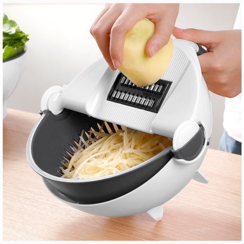 Multifunction Magic Rotate Vegetable Cutter With Drain Basket Large Capacity Vegetables Chopper Veggie Shredder Grater Portable Slicer Kitchen Tool With 8 Dicing Blades New 9 In 1