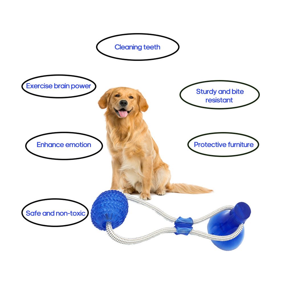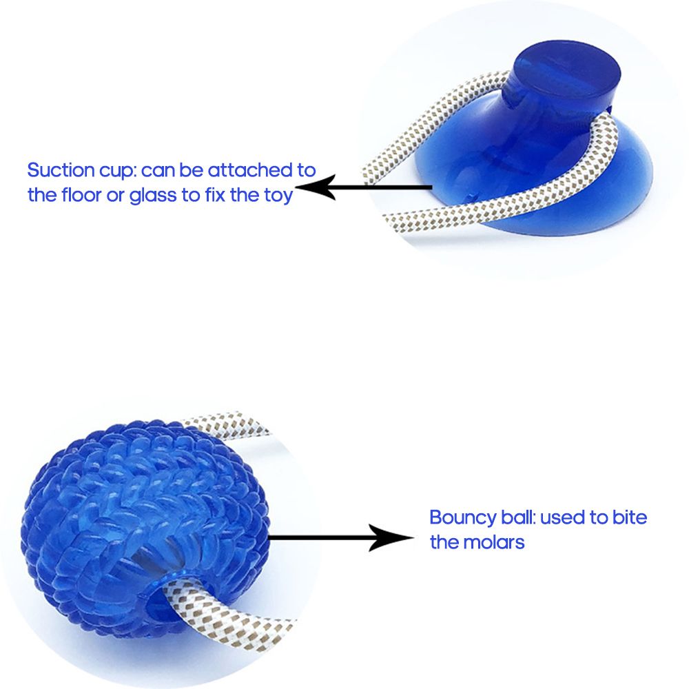 Divided into a suction cup and a bouncy ball, the suction cup can be used to fix the toy on the floor or , the bouncy ball is used for biting and cleaning the teeth.