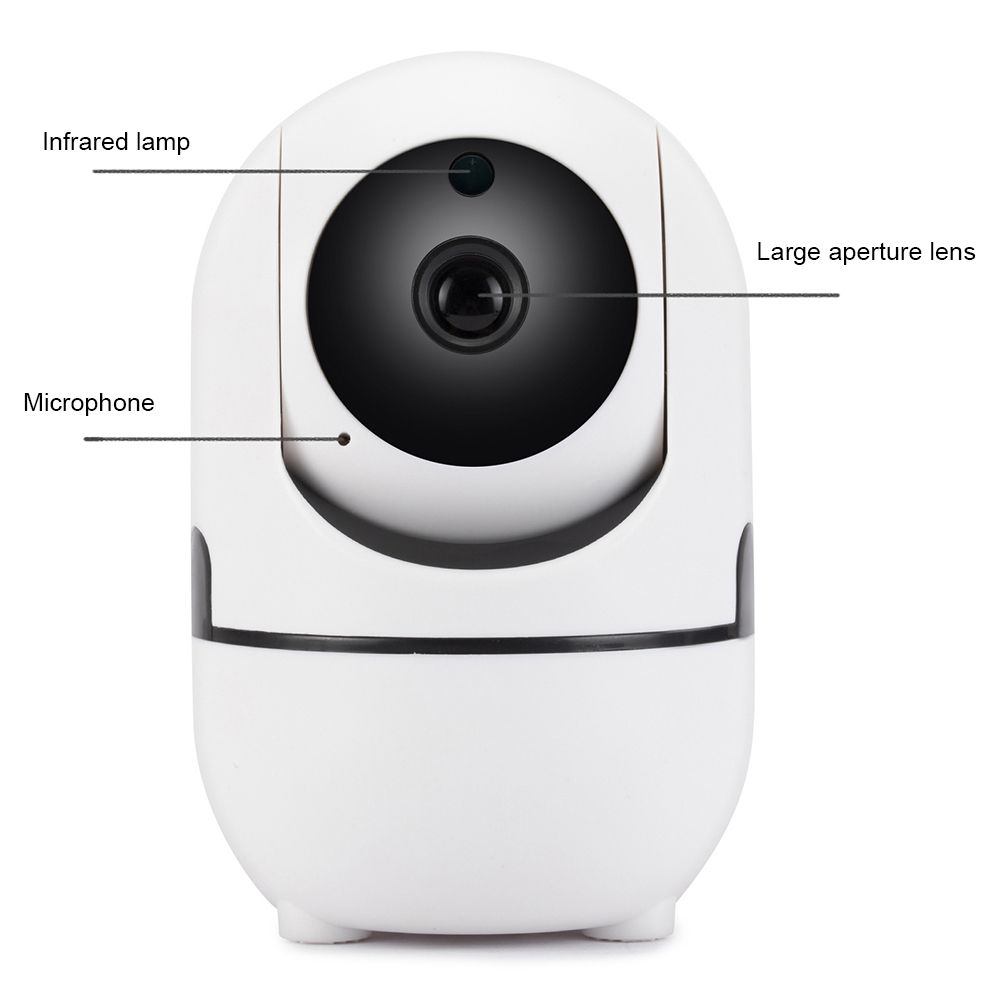 Mini Security Baby Monitor Infrared Night Vision Wireless Wifi Camera Mobile Video Two-way Intercom for Home Living Room BedroomFeature:1. WiFi Camera: The surveillance IP camera supports wifi connection and is more widely used. At the same time, TF card storage can record even without internet.2. Clear Night Vision: Infrared night vision, mobile recording, PTZ rotation, remote viewing, video playback, APP alarm push.3. Simple Installation: Wireless wifi connection, no need for any complicated wiring and settings, plug-in card power supply, mobile phone download APP, add devices to watch remotely on mobile phones.4. Applicable Place: This Wi-Fi IP camera can be mounted/placed in the living room, kitchen, bedroom, office and other indoor places.5. Satisfaction Guarantee: We strive to provide each customer with the highest standard of customer service to ensure you have a pleasant shopping experience. If you have any issues, inquiries or need assistance, please feel free to contact us directly.Specification:Lens: full glass lensResolution: 720P/1080PResolution: 300,000 (D1)Focal length: 3.6mFrames: 33.27Gimbal angle: horizontal 355°/vertical 120°Video storage: insert TF cardNetwork support: wireless WiFiNight vision function: infrared lightWiFi transmission distance: 1-10MColor: WhitePlug: US Plug, EU Plug, UK Plug, AU PlugPower supply: 5V/1ADay and night transmission mode: IR-CUT automatic switchingVideo save: auto loop overwriteSupport system:Support for Iphone, Android mobile phone, tablet computerProduct weight: 154gPacking weight: 247gProduct size: about 107*68*68mm/4.21*2.68*2.68inchNote:Due to the different monitor and light effect, the actual color of the item might be slightly different from the color showed on the pictures. Thank you!Please allow 1-2cm measuring deviation due to manual measurement. 1 * Camera1 * Charging cable1 * Charging head (optional plug)