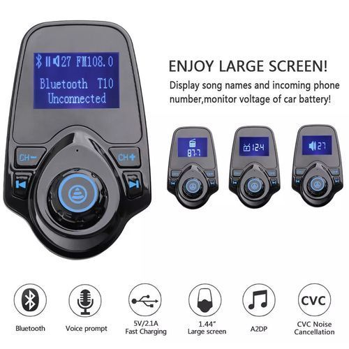 T11 Bluetooth Car Kit MP3 Player FM Transmitter Wireless Radio Adapter USB Charger Blue Backlight is a well-designed portable multi-media car FM transmitter that offers you a chance to indulge yourself in music when you are driving a car. It uses Bluetooth V5.0 + EDR and FM transmitter to stream music and calls from cellphone to your car stereo system. With an internal media player, it can play MP3 files from external TF card or USB flash drive. Built-in mic allows you to speak to callers without picking up the phone. Moreover, it offers dual 5V/2.1A USB outputs to charge your portable devices. Mini and light, it easily fits in the car.