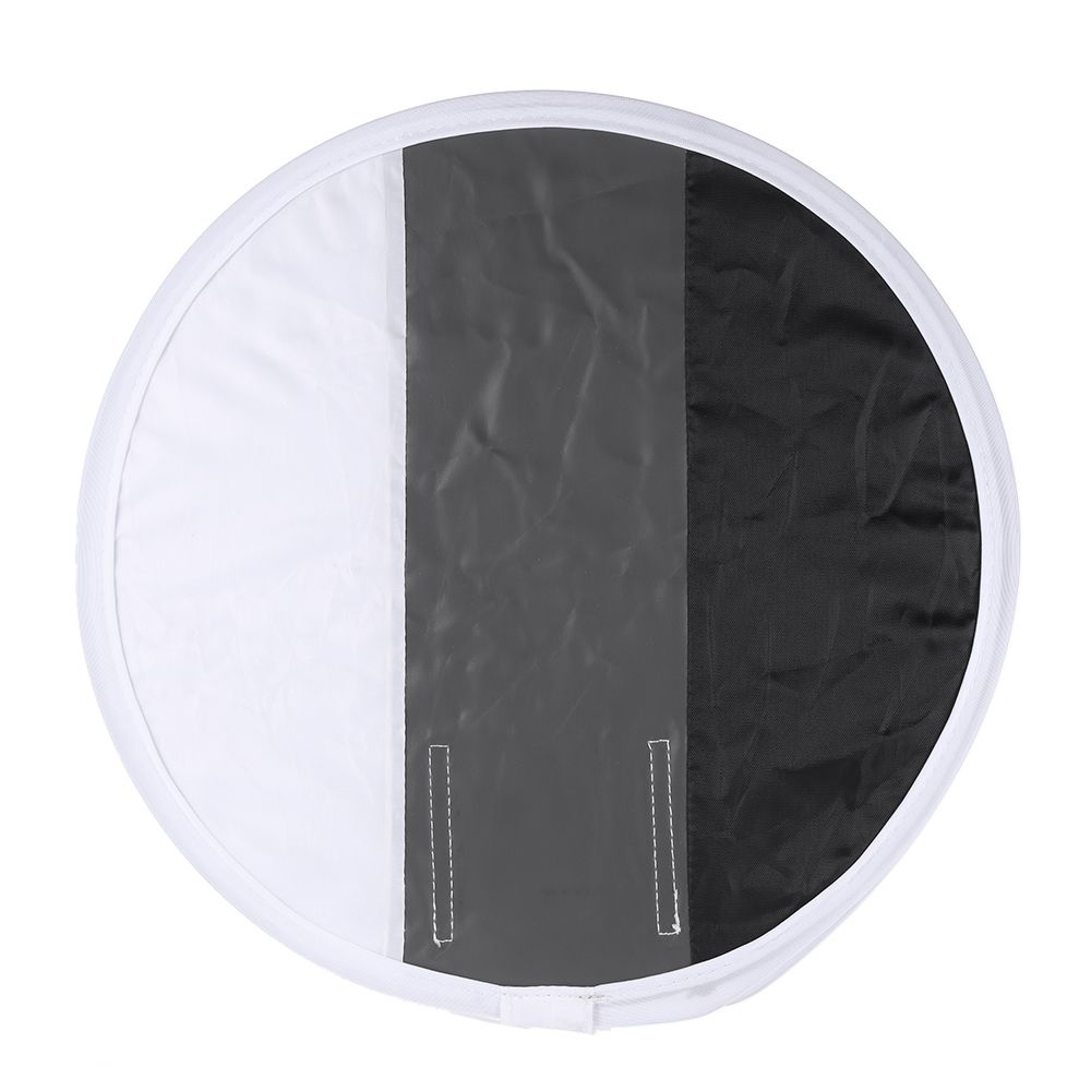 This portable round diffuser with easy-fold design is quite suitable for outdoor photography. The exquisite and specially-processed reflective material can make the light output much more uniform and soft. The back can be used as white/grey/black card.