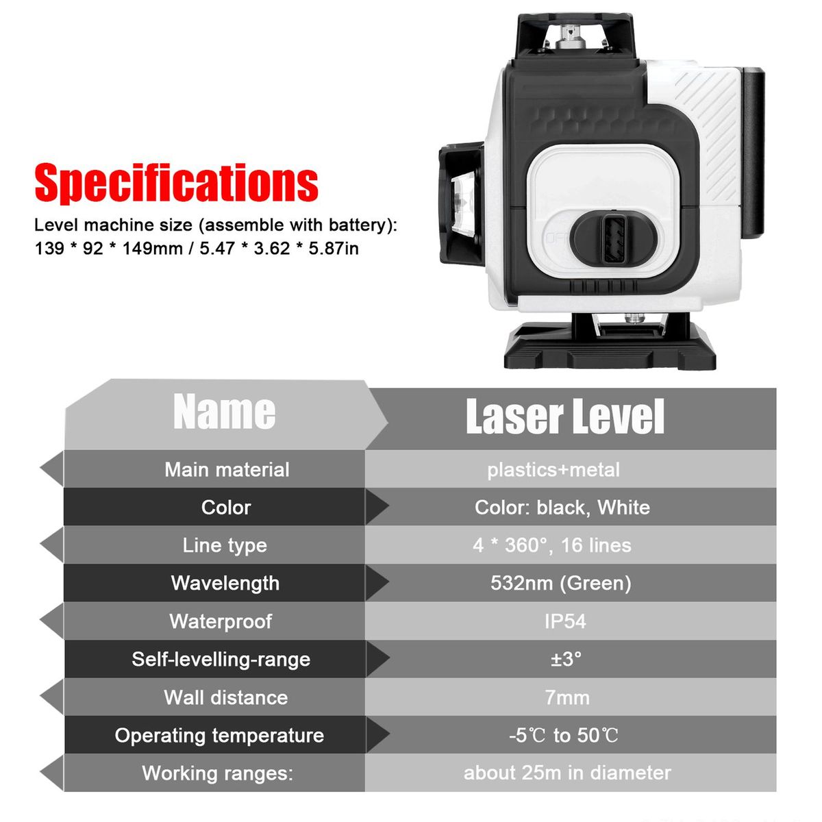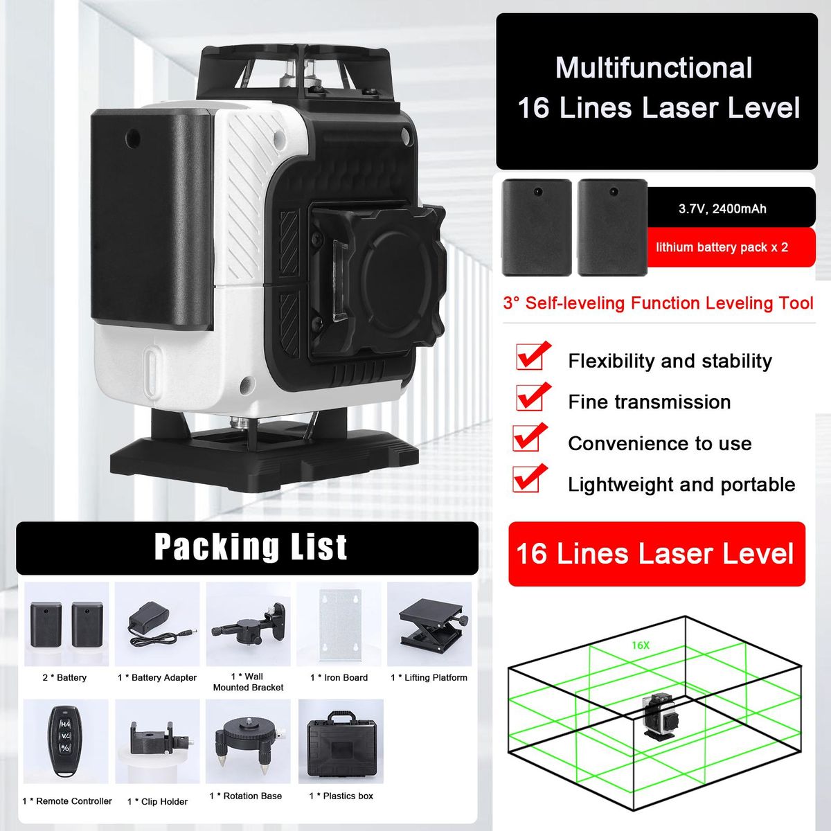 Buy Multifunctional 16 Lines Laser Level 3° Self-leveling Machine Rechargeable Lithium Battery Leveling Tool Omnidirectional Ground Wall Sticker Waterproof Home Improvement Tools Set in Nigeria