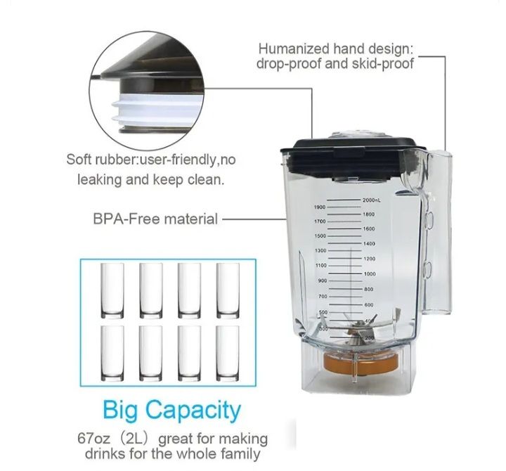HIGH EFFICIENCY - This commercial quiet blender is equipped with Stainless steel 420J (inner blade + outer blade combination) for all-round ice crushing. The powerful copper motor ensures the high rotary speed of 8400-32000RPM, this blender is suitable for making different amount of smoothies.