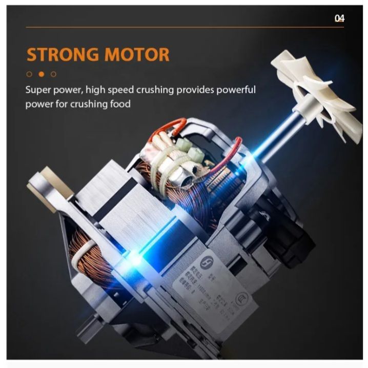 CONSIDERATE DETAILS - The separate container cover for easy feeding of fruit and ice. An extra docking gear is included. Humanized handles on both sides for convenient movement. Air vents for effective heat dissipation.