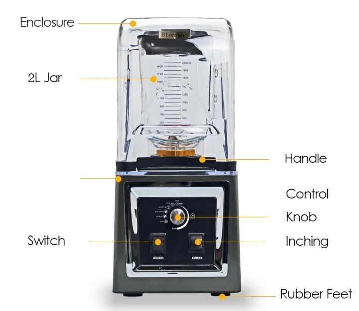 SOUNDPROOF - Utilizing the vibration dampening technology, our commercial blender adopts a thickened secure sound enclosure for covering its container. Besides, the 3-side silica gel layer with a reliable denoising ability can effectively maintain decibels at 75-85 dB.