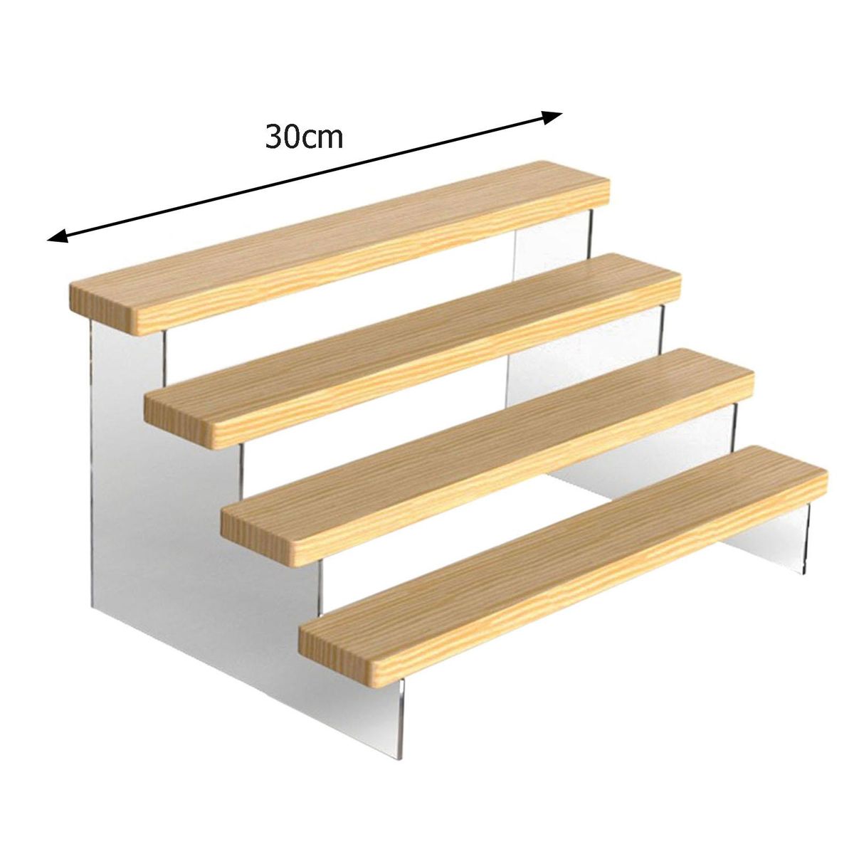 Nice Display: The display rack shelf stand can help you to create an eye catching feature of your products.Widely Used: Great for displaying and organizing, accessories or wallet, mini cartoon figures, , glasses, mobile phone, toiletries, food, kitchen bottles, or any other items.Sturdy: Made of high transparency Acrylic and wooden plate, very stable and sturdy for last-long using.Easy to Assemble: Thickness acrylic plate, no trim, smooth edge, solid wood, easy to install in few minutes.Neat and Tidy: Let us to display an assortment of products in a neat and organized arrangement.