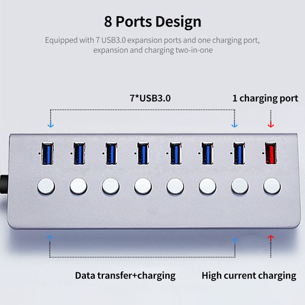 Equipped with 7 USB3.0 expansion ports and one charging port, expansion and charging two-in-one.