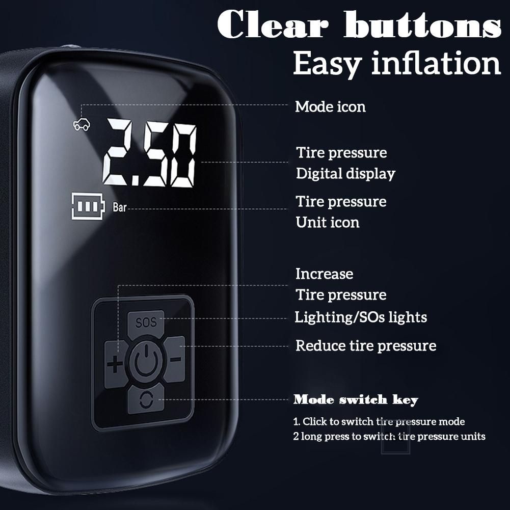 *Digital Display: The airs pump is design with digital display, it is easy to read data, accurates digital display of tire pressure, keep track of tire pressure, stop when full.