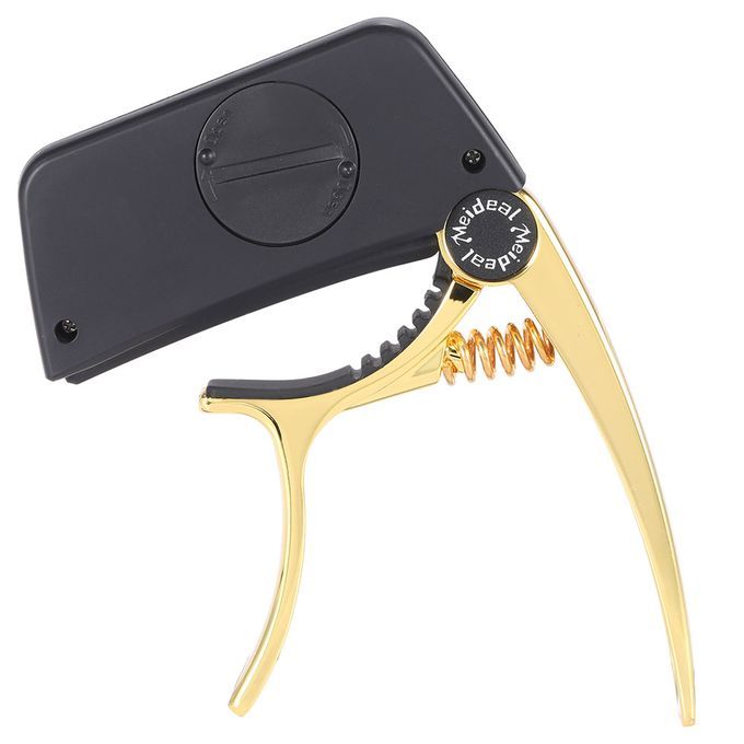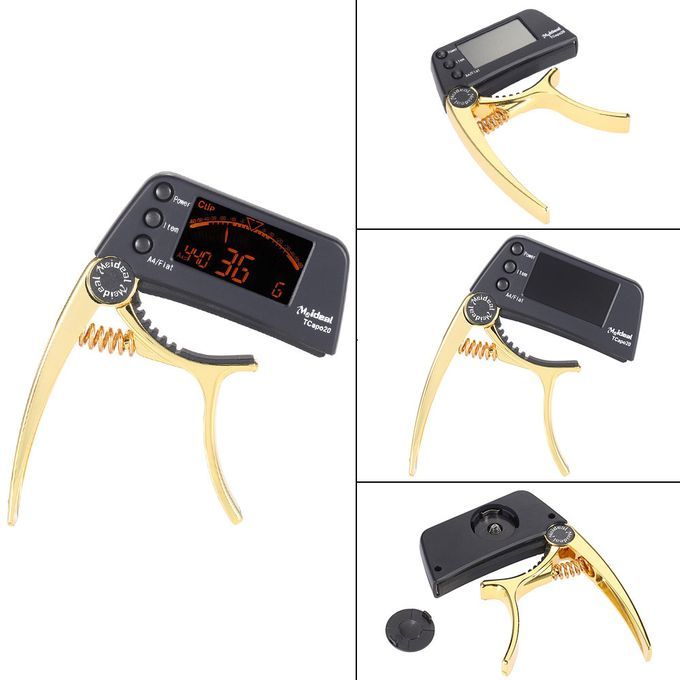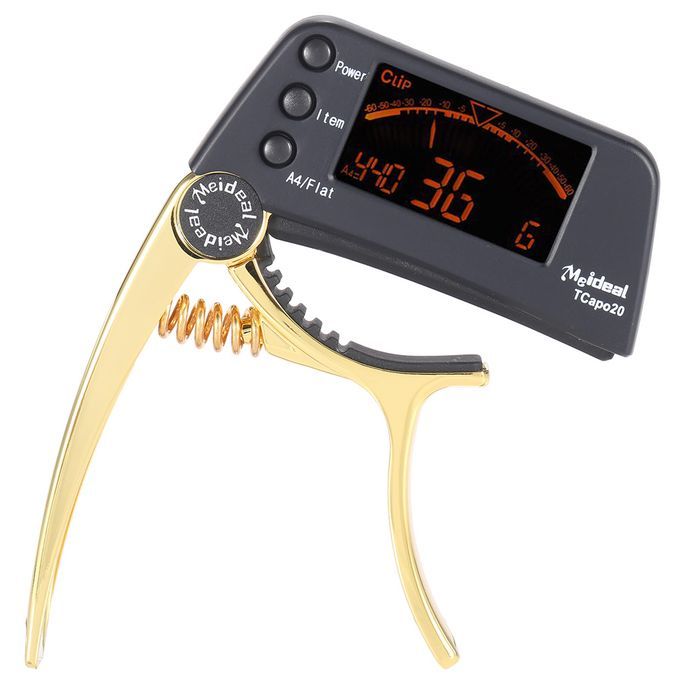 Multi-functional 2-in-1 guitar capo & tuner for multiple string instruments. With a large LCD display which makes it very user friendly by changing color to let you know the tuning information.