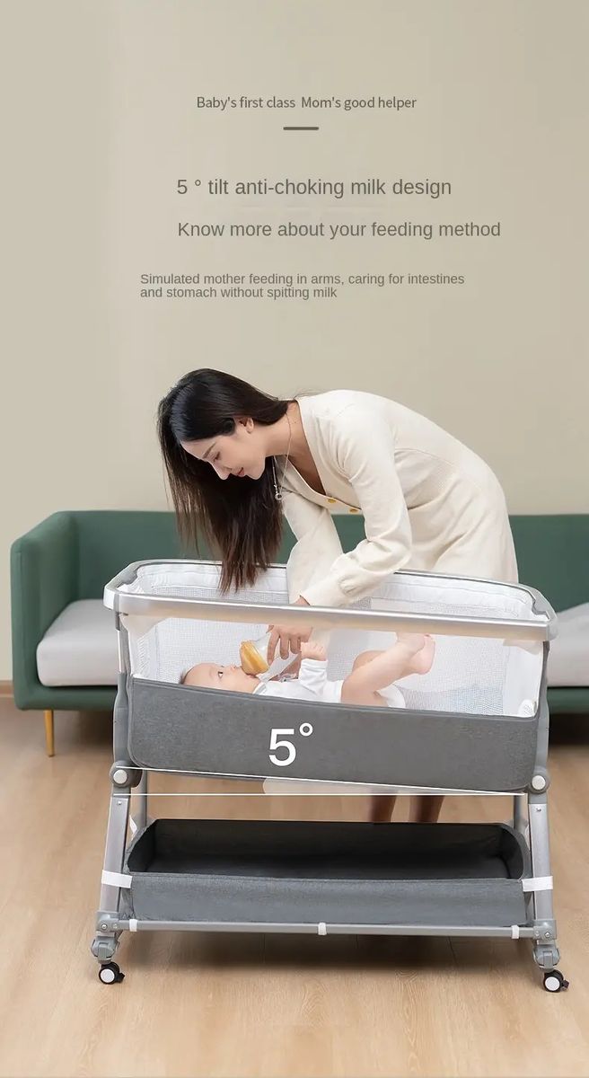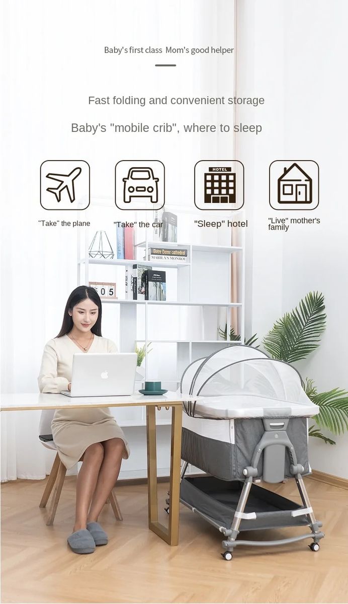This crib spell portable collapsible bassinet is a multifunctional sleeper for infants aged 0-24 months. It is made of lightweight architecture and is easy to build and easy to set up. Equipped with height adjustment and a swinging function, you can turn on or off its swinging feature according to the baby's preference.