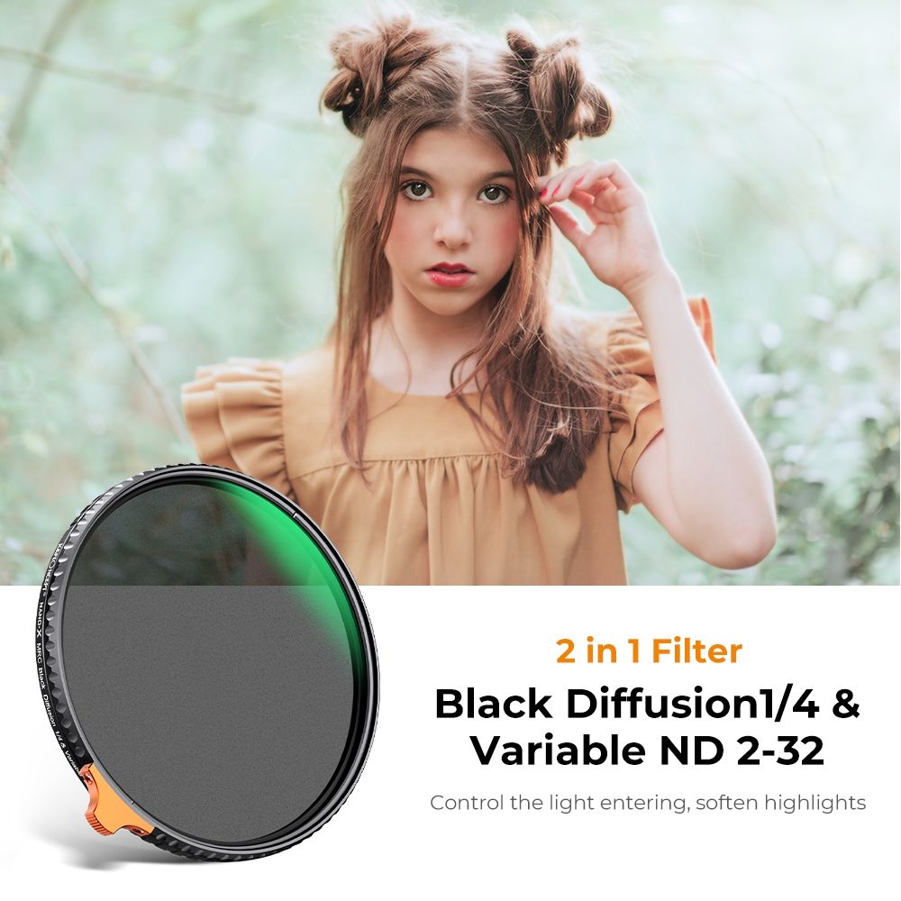 1.Multifunctional non forked nd2-32 & Black Soft 1/4 filter. One filter has two functions, which can be used as either a dimmer or a black soft filter.
