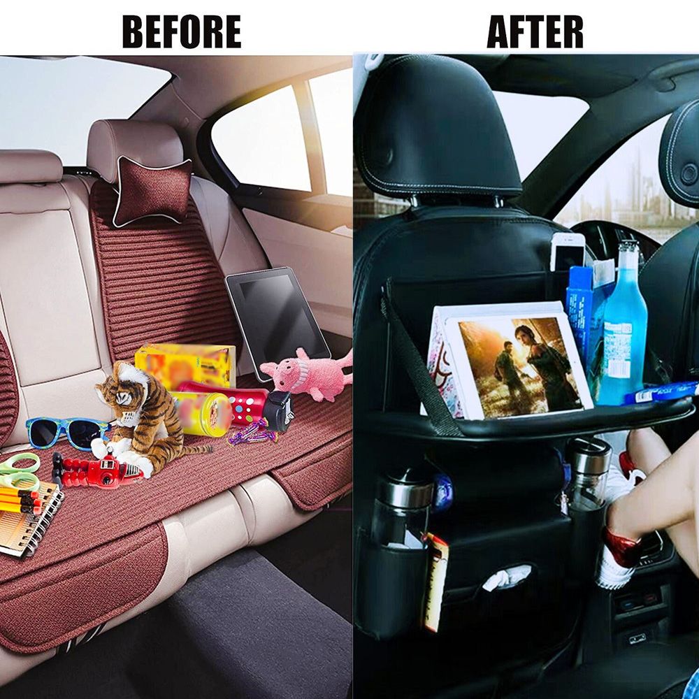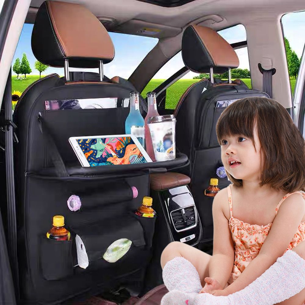 [Foldable Tablet Holder] The upper part of the car organizer can be put down for placing a tablet, entertaining children and you during long and boring time on road.
