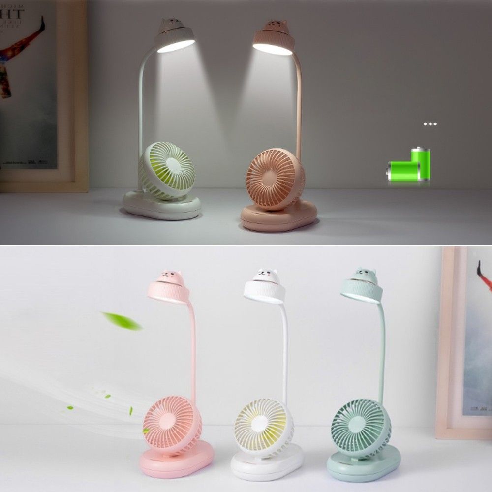 Multifunctional Desk Lamp Fan Adjustable Eye Care LED Table Lamp 6500-7500k Three Modes 2000mAh USB Rechargeable Fan For School Home Office