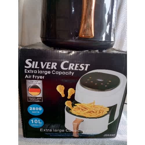 * Introducing the 10L Extra Large Capacity Silver Crest JD689B Air Fryer, designed to transform the way you cook for your family. Perfect for a family of 5 to 10, this air fryer combines efficiency with health, offering a XL food basket capacity and a powerful 2800W rating for quick, effortless cooking.