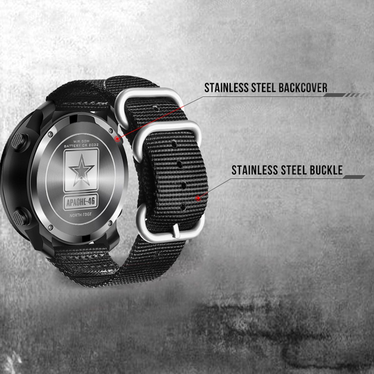 Features:Multifunctional: Altimeter, barometer, compass, temperature, pedometer, stopwatch, count down, pacer, watch back light effect in dark, 50m waterproof, 2 sets of alarm and so on.