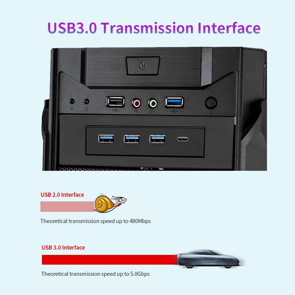 High-speed transmisson, the transmission speed up to 5Gbps, backward compatible with USB 2.0 and 1.1.