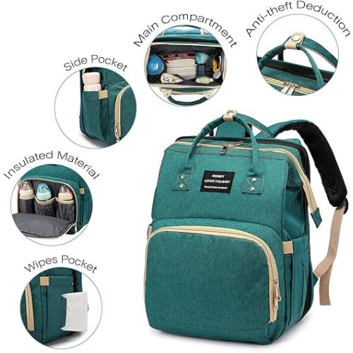 Buy Multifunctional Foldable Baby Travel Diapers Bag With Bed Crib - Green in Nigeria