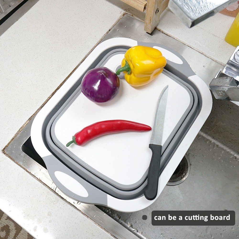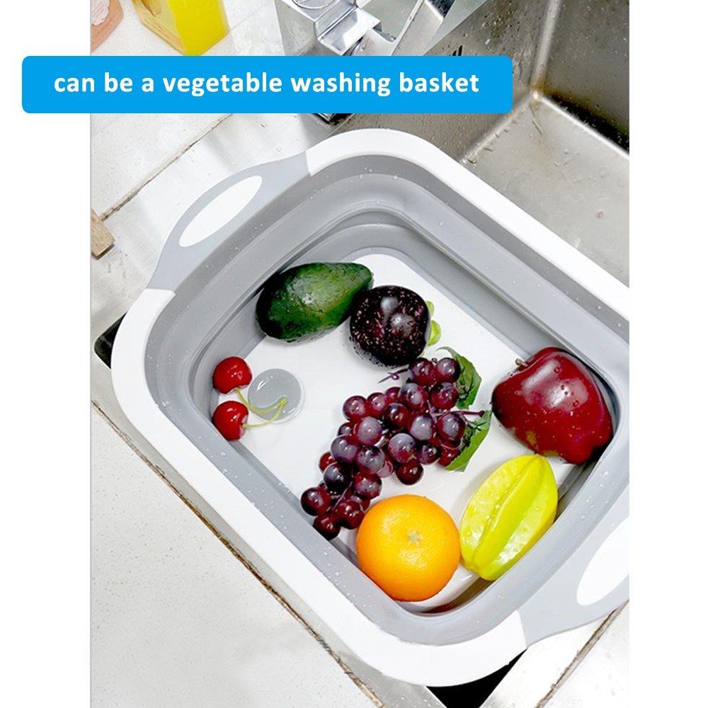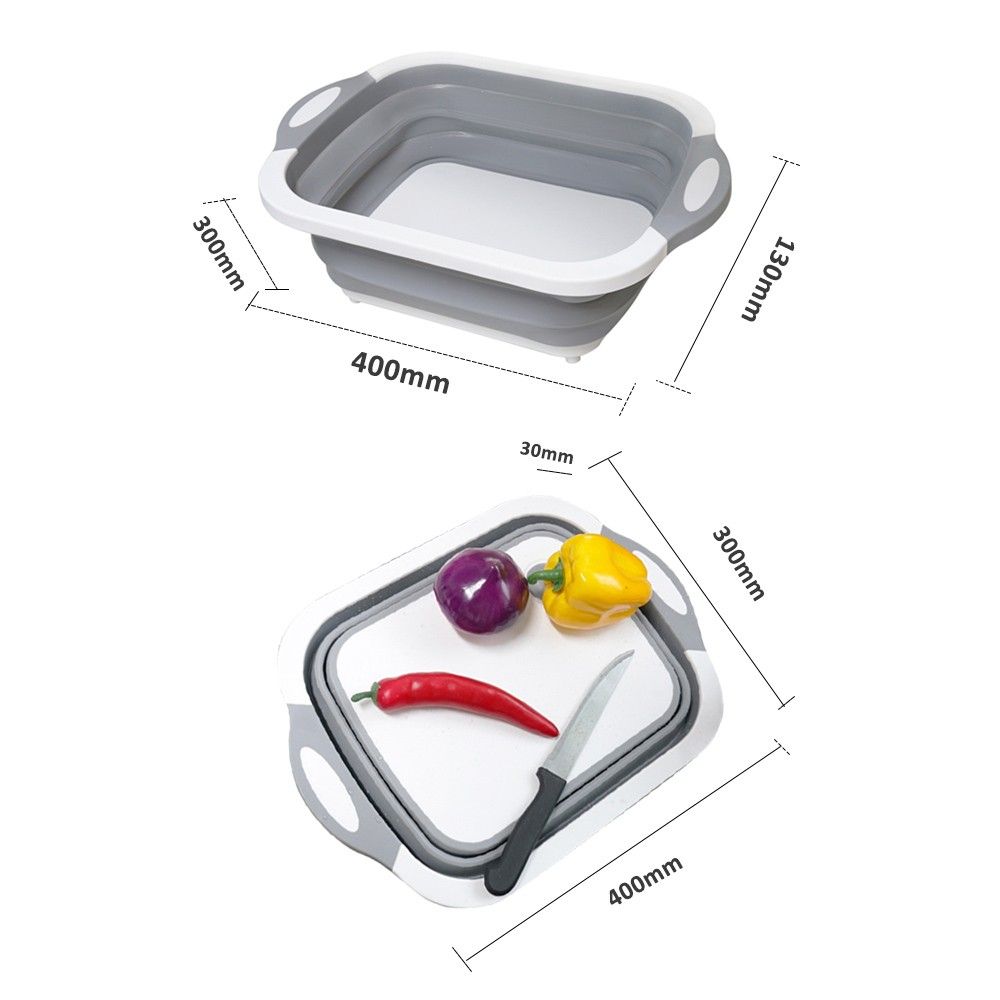 Can be used as a cutting board after folding or vegetable washing basket and drain basket after opening.