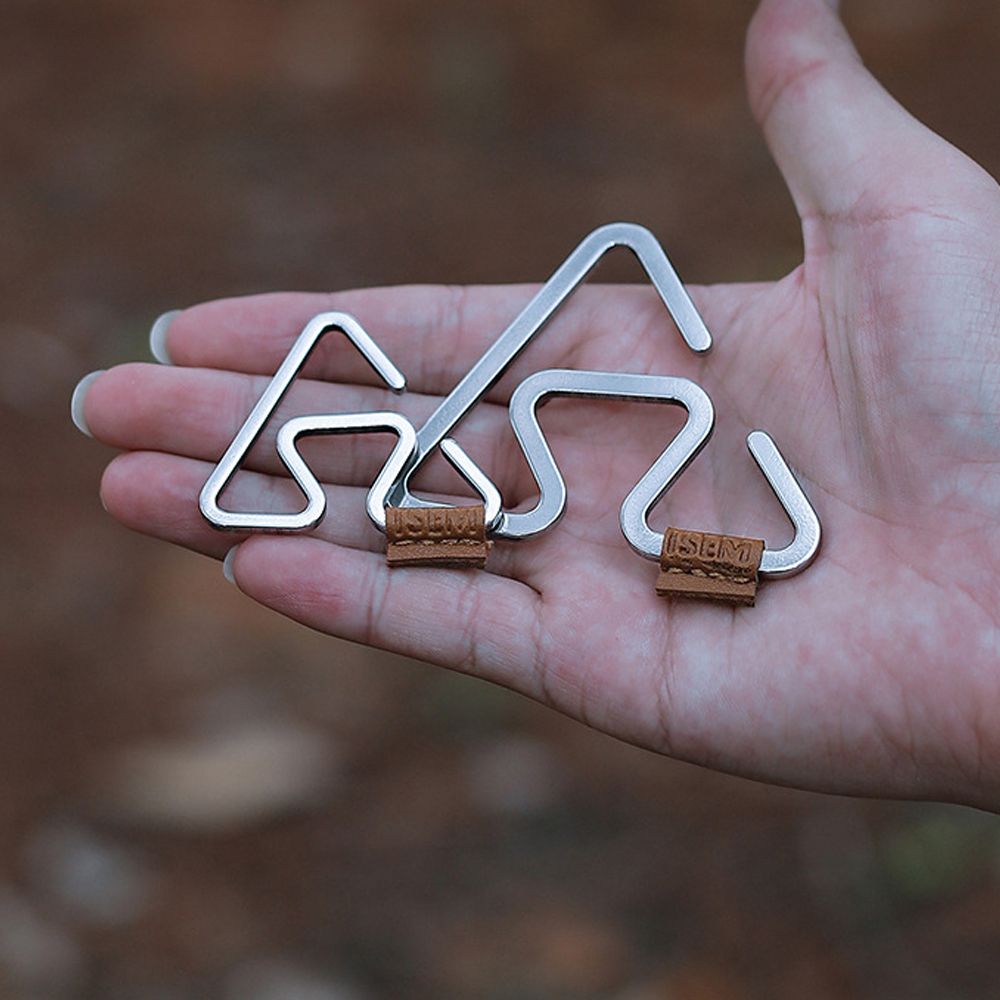 Can be hung on a bracket for hung pot, pan, clothes, and other outdoor gears.