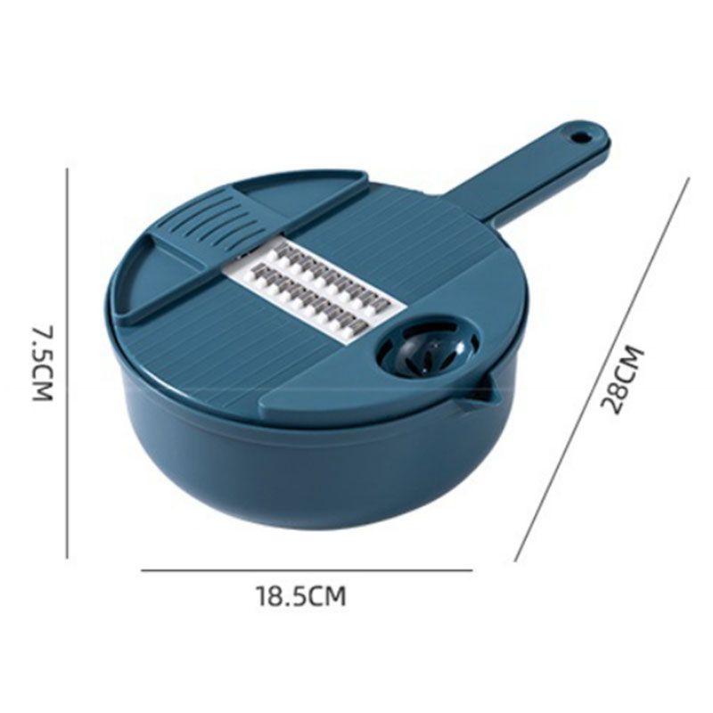 multi-function vegetable cutter is a kind of kitchen utensil for cutting food. functions such as slicing and shredding are realized; the purpose of fixing the hand guard and the base is realized by combining the hand guard and the base