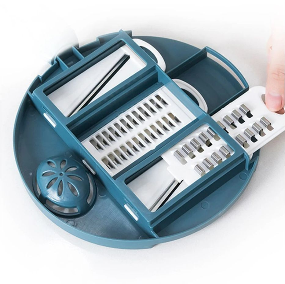 multi-function vegetable cutter is a kind of kitchen utensil for cutting food. functions such as slicing and shredding are realized; the purpose of fixing the hand guard and the base is realized by combining the hand guard and the base .The