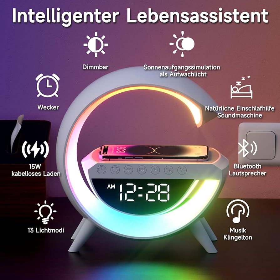 Bluetooth Speaker Wireless Charger Smart LED Lamp, Charging Brick (Charger head) and Charging Cable