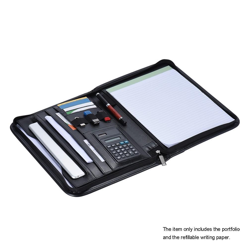 Buy Multifunctional Professional Business Zippered Portfolio Padfolio Folder Document Case Organizer A4 PU Leather with Calculator Business Card Holder Memo Note Pad in Nigeria