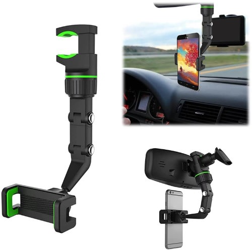 360° Rotating Rear View Mirror - Phone Mount With Adjustable Arm