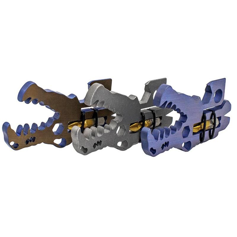 Bottle opener/slotted screwdriver/middle slot pry bar/drill/lanyard hole/hex screwdriver/box opener/scraper.