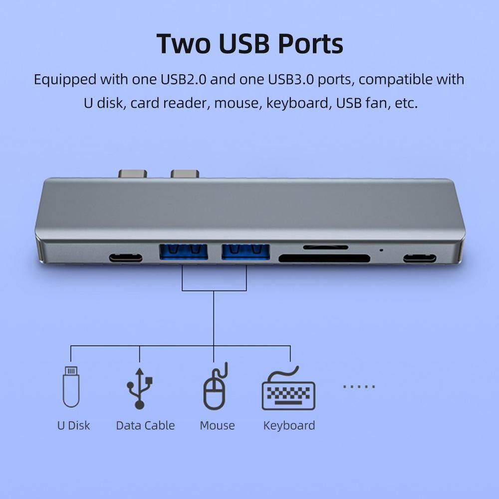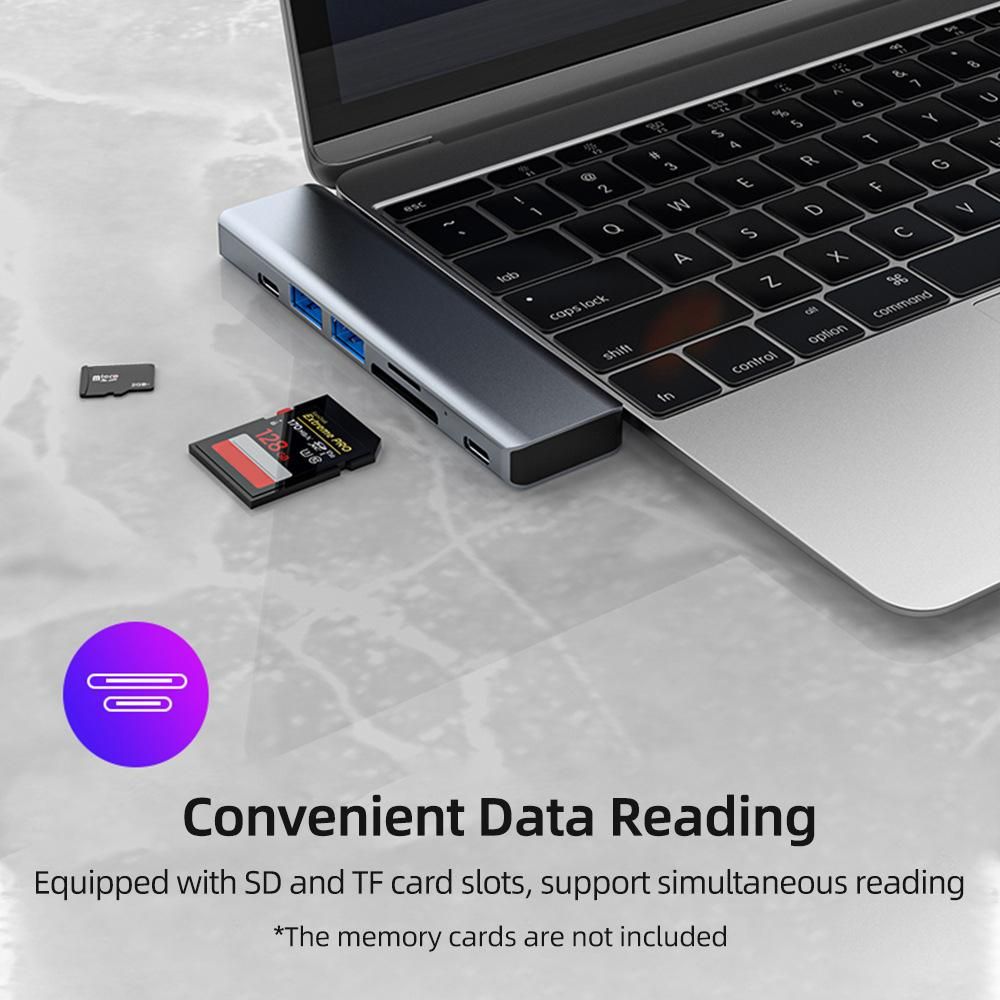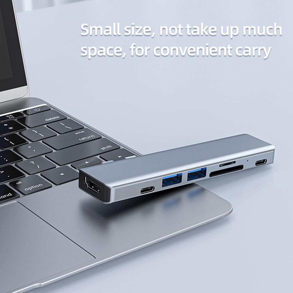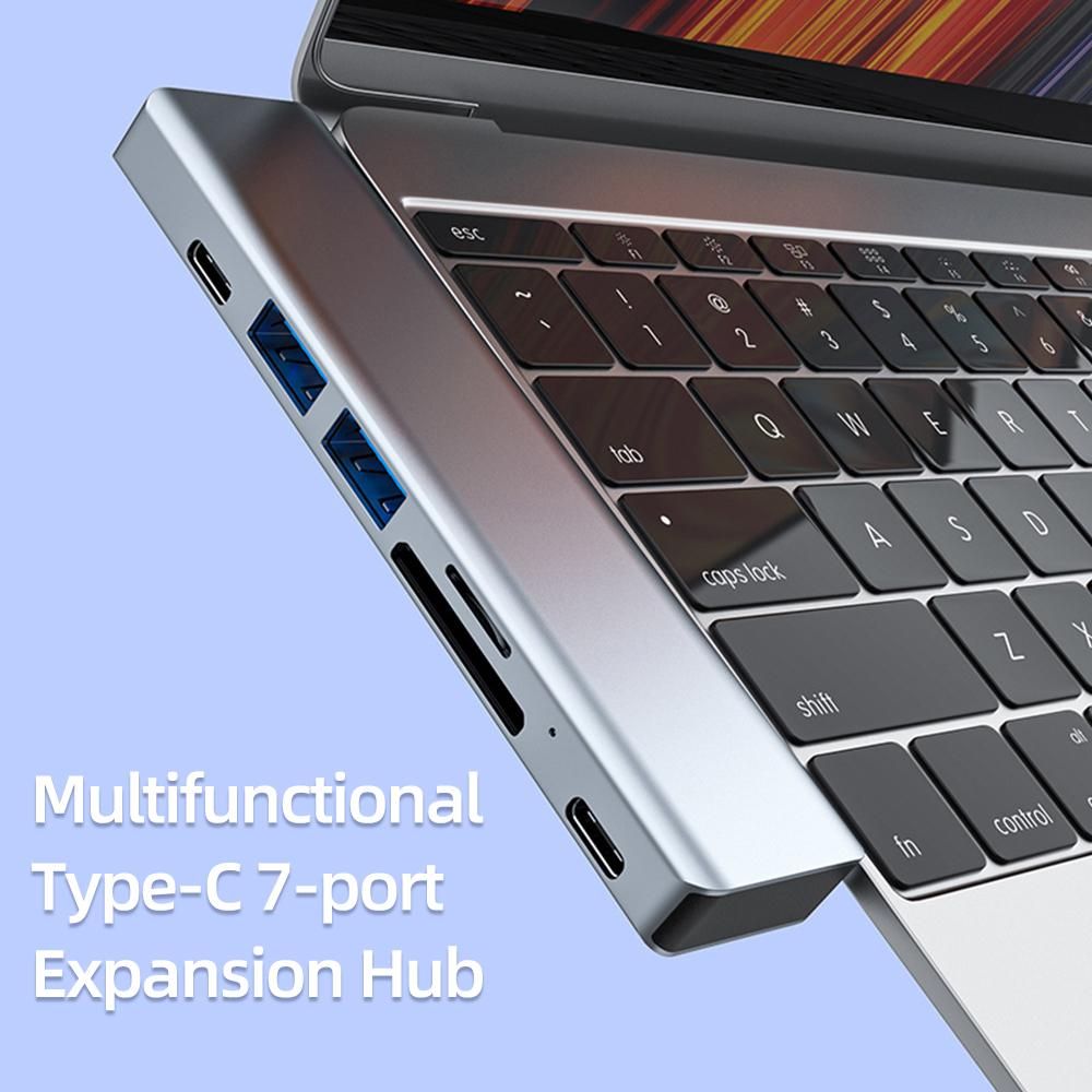 Buy Multifunctional Type-C 7-port Expansion Hub Type-C 7-in-2 Hub Aluminum Alloy Shell HD+2*Type-C+USB3.0+USB2.0+SD TF Card Slots in Nigeria