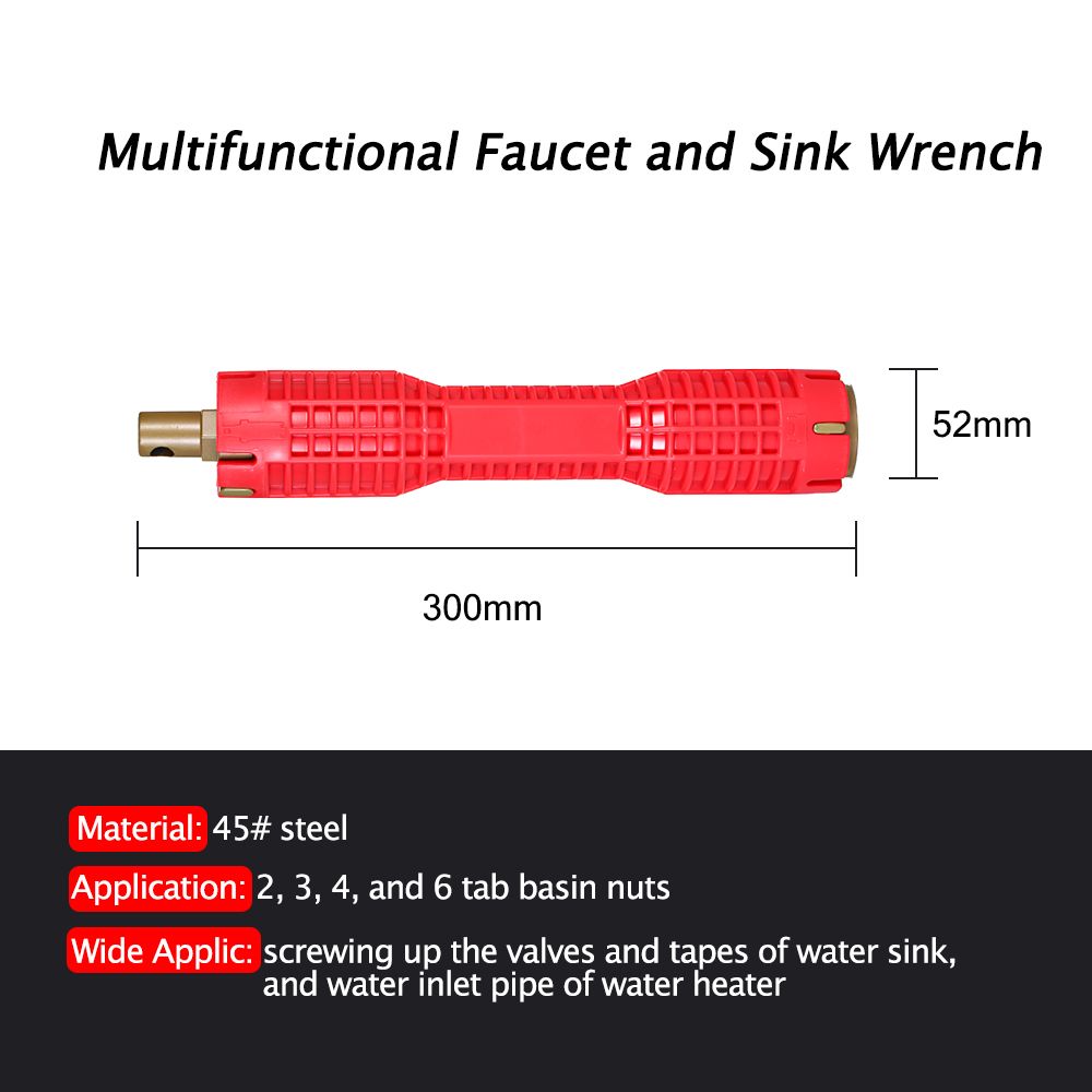 Multifunctional sink wrench is very useful when repairing or installing the sink and water heater.