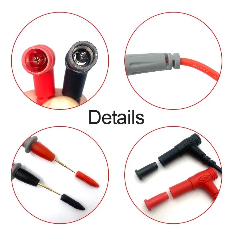 Red: positive Black: negative Cable Length:About 92cm Total length:About 107cm Maximum Range: 1000V 10A/1000V 20A 1. Comfortable Hand feel, antiskid 2. Universal multi-meter plug, fits for most multimeter on market 3. Better protection between Probe and wire, not easy break