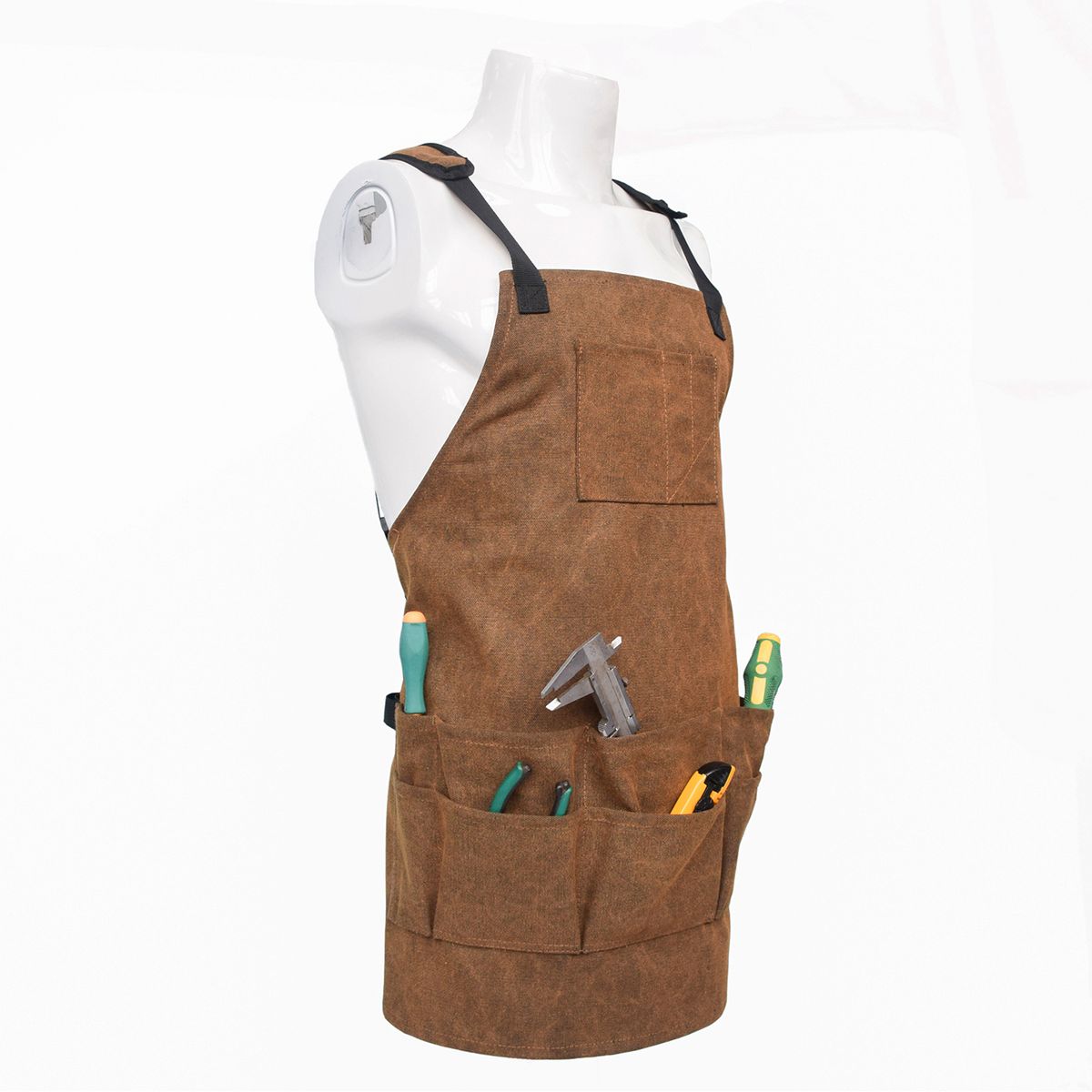 6 pockets on the hem, you can use it to put screwdriver, pliers, wrench and etc..