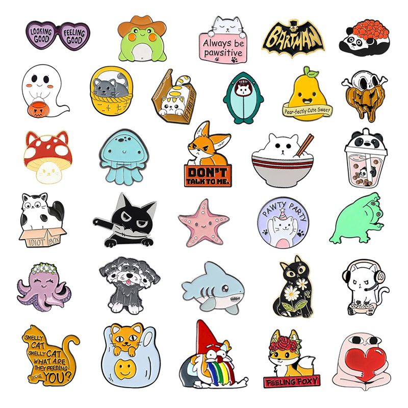multiple Pack - Choose 24 Unique and Cute Enamel Backpack Pins from Collections of Cartoon/Frog/Cat/Dog/Magic/Ocean/Plant/Halloween/etc.