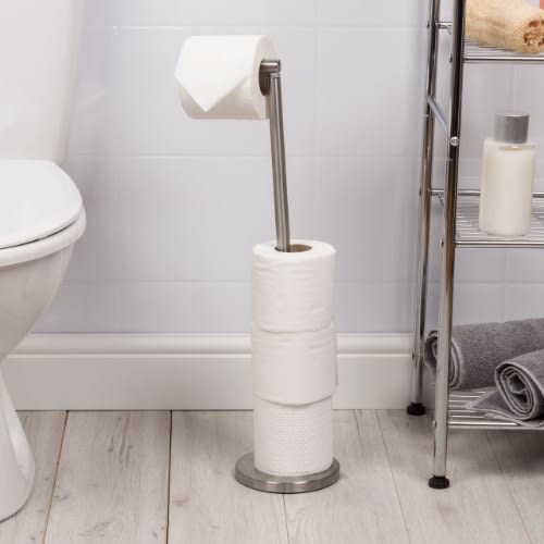 Keep stocked up with toilet roll with this brilliant Beldray Swivel Top Toilet Roll Holder, a perfect addition to any family home.Quick and easy to assemble, the toilet roll holder can store up to four rolls at a time so you can stayed stocked up at all times.Great for everyday use, this free standing holder can be easily moved around and has a weighted base to keep the holder stable.Boasting a sleek design, the holder features a simple design with a brushed stainless steel finish, suiting any bathroom aesthetic.