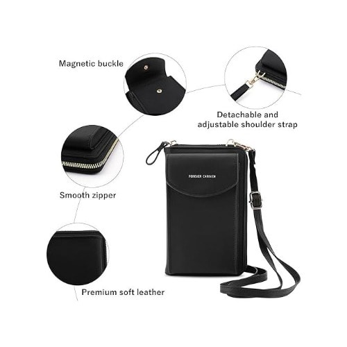 The Original Clutch Wallet: Our original clutch wallet is light and stylish and made for a life on the go. You can wear it around your wrist or turn it into a crossbody handbag using the included strap.Premium Material: The handbag is made of high-quality soft vegan pu leather, and available in a variety of colors. Finished with strong polyester fabric, it will keep its shape under all conditions. You can trust our quality!Detachable Shoulder Strap: The original clutch wallet is lightweight and stylish and made for a life on the go. You can wear it around your wrist or turn it into a handbag using the included strap.Multiple Compartments: The original clutch wallet has enough space for your cards, cash, glasses, keys, passport, etc. It also has an exterior pocket with a handy button to securely store your phone. Multiple compartments to meet your daily travel needs.Suitable For Any Occasion: Suitable for almost all occasions, such as shopping, dating, working, traveling. It has enough room for your cards, cash, glasses, keys, passport and more.Material Selection: The mobile phone shoulder bag is made of microfiber PU leather, with smooth texture, lightweight, waterproof and durable. The soft lining material allows the phone to avoid damage from friction.Internal Hardware: The gold magnetic push button is embedded inside, which does not affect the beauty of appearance, ensuring the stability of the phone bag. The inner layer contains a well-closed zipper, which prevents the loaded things from falling and losing easily, giving the bag shoulder bag wallet an additional safety bar. The zipper slides easily without getting stuck, so you can use it with confidence. The shoulder strap can be removed as desired.Design Concept: Special clamshell closure, exquisite design, is a must-have mobile wallet for all women. This crossbody cell phone wallet has a front pocket, two main compartments and three internal card slots. The two main compartments can store valuables such as cell phones, cash, tickets, keys and easily lost coins. The three internal card slots can hold your various membership cards, bank cards and other cards.Portable Occasions: 4.9 x 19.3 cm. Small size and large capacity mobile phone handbags are very convenient for you to carry to attend various outdoor activities. Such as walking, shopping, camping, traveling, work, dating, parties, dinners, cycling, climbing. The stylish and beautiful multi-functional design can be matched with your clothes, which can show your personal charm!The most heartfelt gift: If you are worried about choosing gifts for your mother, grandmother, aunt, daughter, girlfriend, wife, lover or other female friends, colleagues, classmates, you can choose gift on Valentine's Day or Thanksgiving, Mother's Day, birthday, anniversary, special holidays, Halloween, Christmas, New Year, she will be a mobile phone messenger wallet full of heart, fashionable and practical, small handbag coin wallet must be a perfect gift you can't miss!