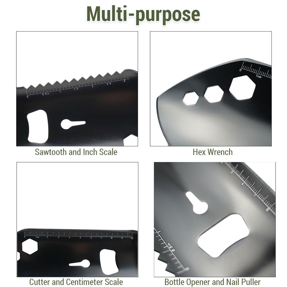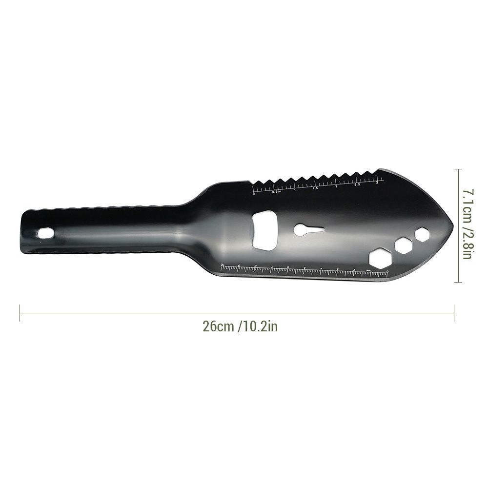 Our multifunctional outdoor shovel serves as a shovel, , ruler, nail extractor, wrench, and bottle opener. It's an excellent tool for campers, backpackers, hikers, and gardeners, offering a range of uses in one compact design.