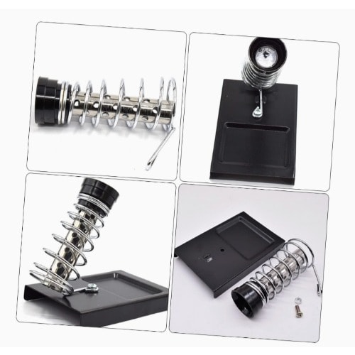 Features:Made of durable materials.Detachable soldering iron holder for easy storage.Compatible with many types of soldering irons from 20w to 300wKeep the hot iron off your work bench in its coiled wire cage.Features a heavy base for excellent stability.Stand also has a cleaning pad for cleaning tips while soldering.